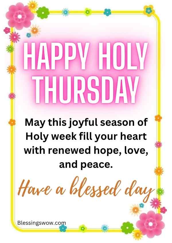 - Wishing you a blessed Holy Thursday filled with reflection, gratitude and prosperity. Have a great day.
